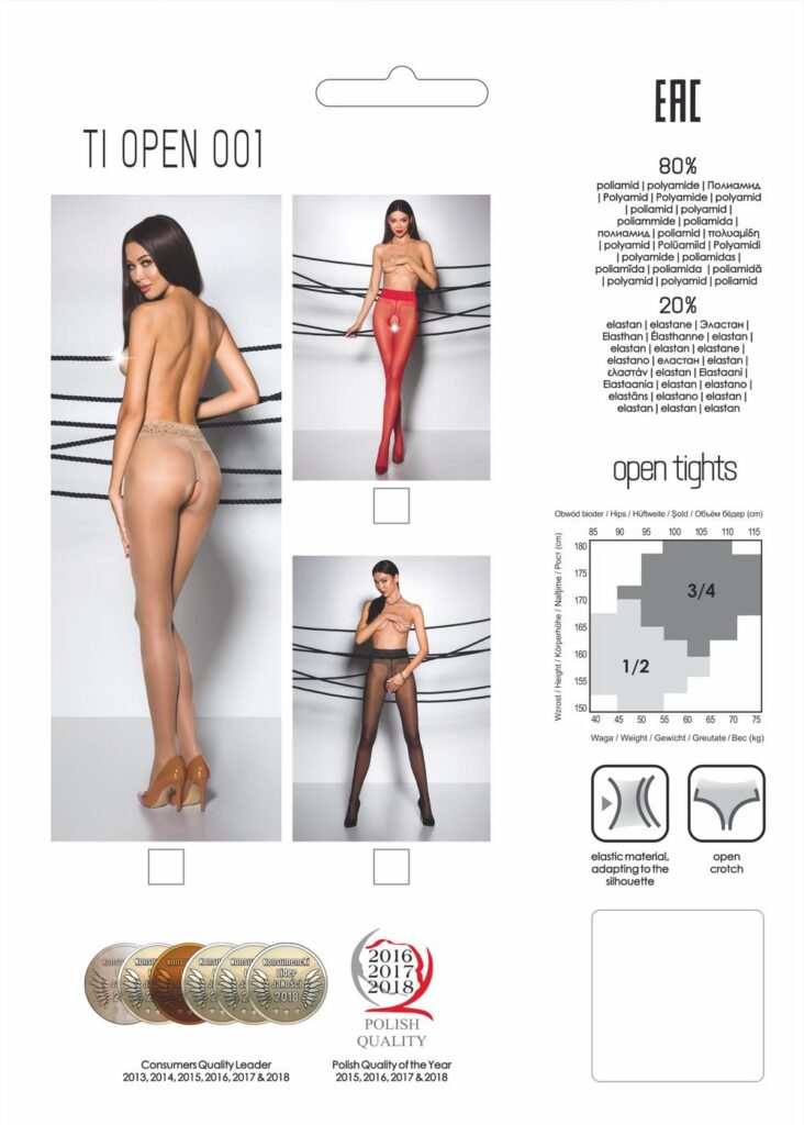 Klasicky hladké punčochové kalhoty s otevřeným rozkrokem jsou dokonale padnoucím modelem. Pas je z krásné elastické krajky, která tvoří jedinou subtilní ozdobu. Věnováno ženám, které ocení kombinaci klasiky s trochou koření.