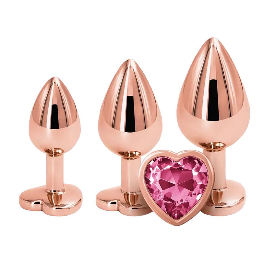 Tato oslnivá trénovací sada obsahuje 3 anální kolíky v designu šperků s kamínky v odstupňovaných velikostech. Samotné kolíky jsou tvarované pro snadné pronikání. Ideální pro trénink sólo nebo s partnerem. Jsou bezpečné pro tělo a na základně mají nádherný drahokam ve tvaru srdce. Vhodné se všemi lubrikanty.
